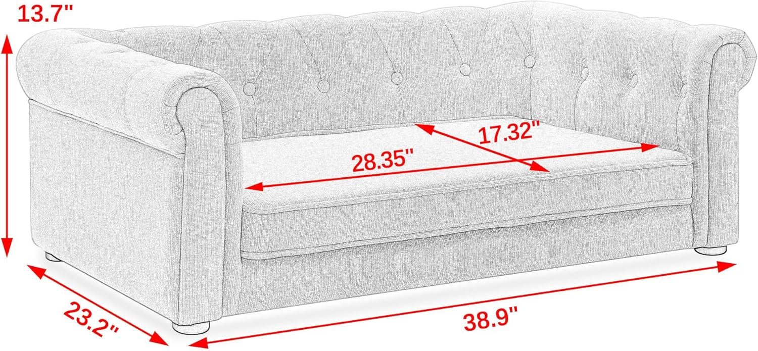 - 【No Assembly Required】 Each pet sofa comes fully assembled and ready to use right out of the box. Simply unpack and place it in your desired location, saving you time and hassle. This comfy sofa supports your pet’s joints, ensuring they get the rest they need in their own dedicated space. The size of the large dog couch is 38.9″ * 23.2″ * 13.7″. Cushion size: 17.32″ D * 28.36″ W.