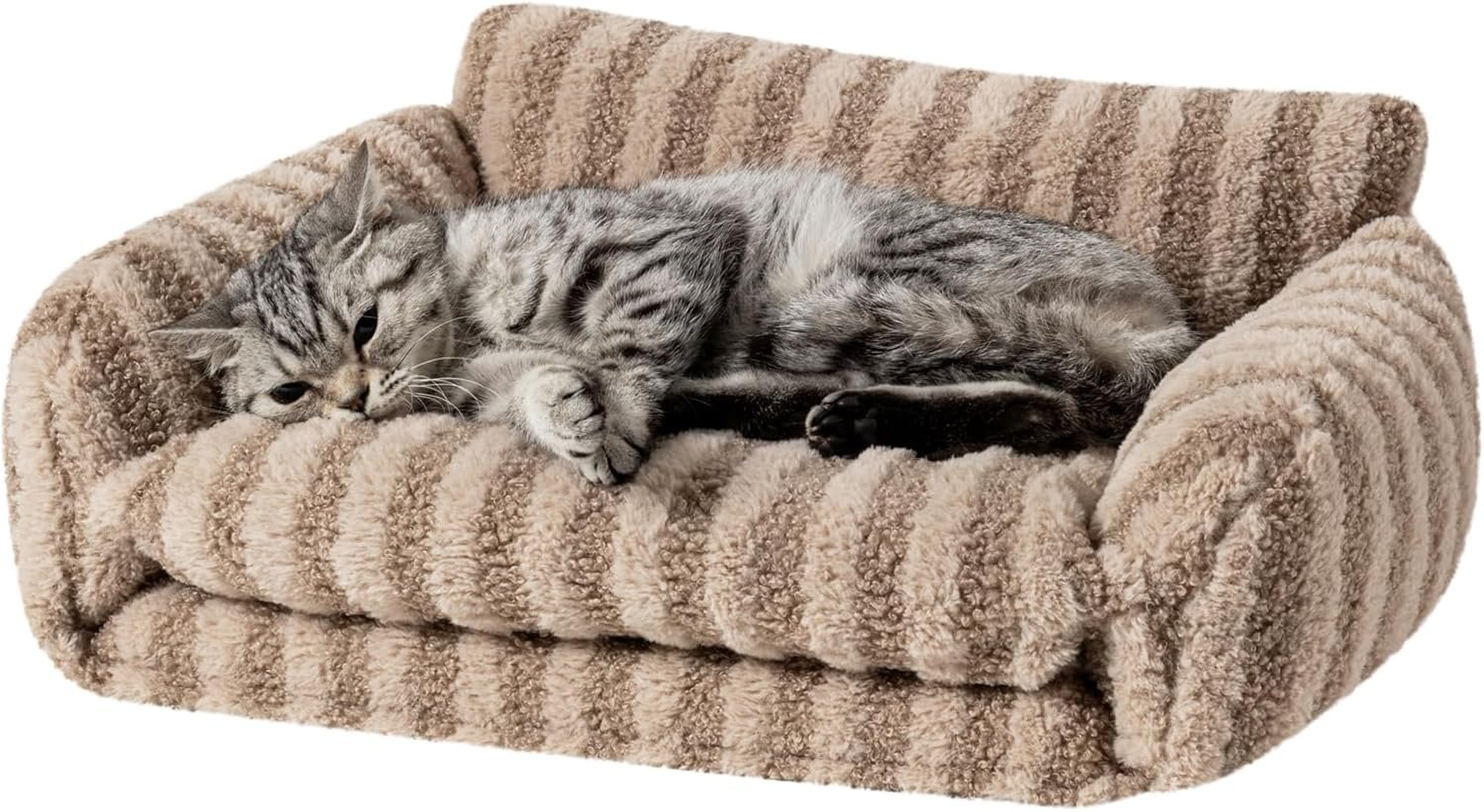 Cat Bed Fluffy Plush Mutifuctional Double-Layer Soft Pet Couch Orthopedic Sofa Nest Beds for Small Cats and Dogs, Khaki (21x15x8 inch)